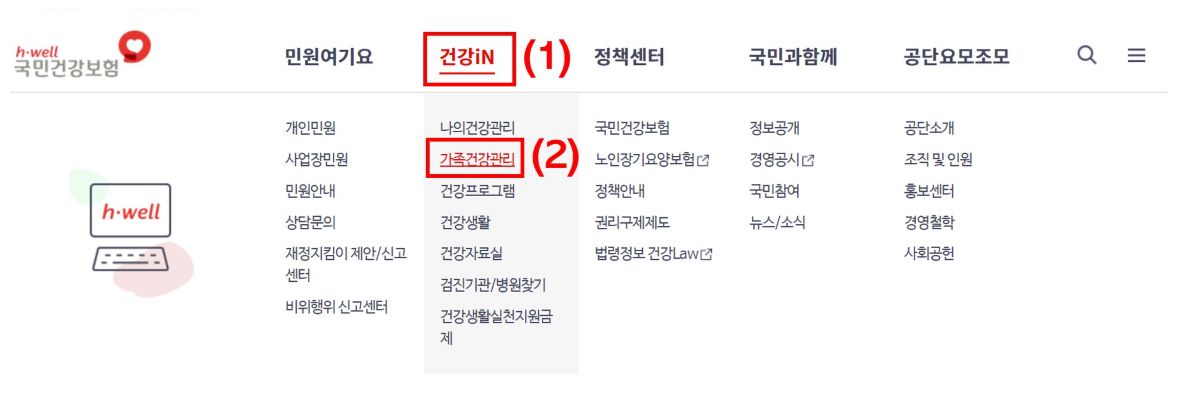 1) 국민건강보험 > 건강in(1) > 가족건강관리(2) 접속